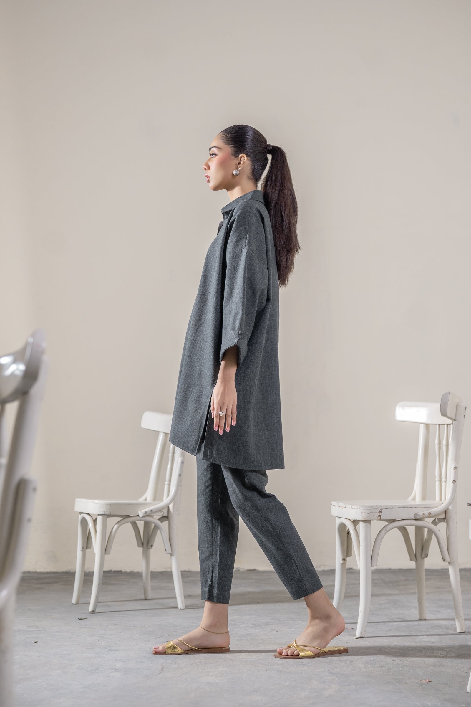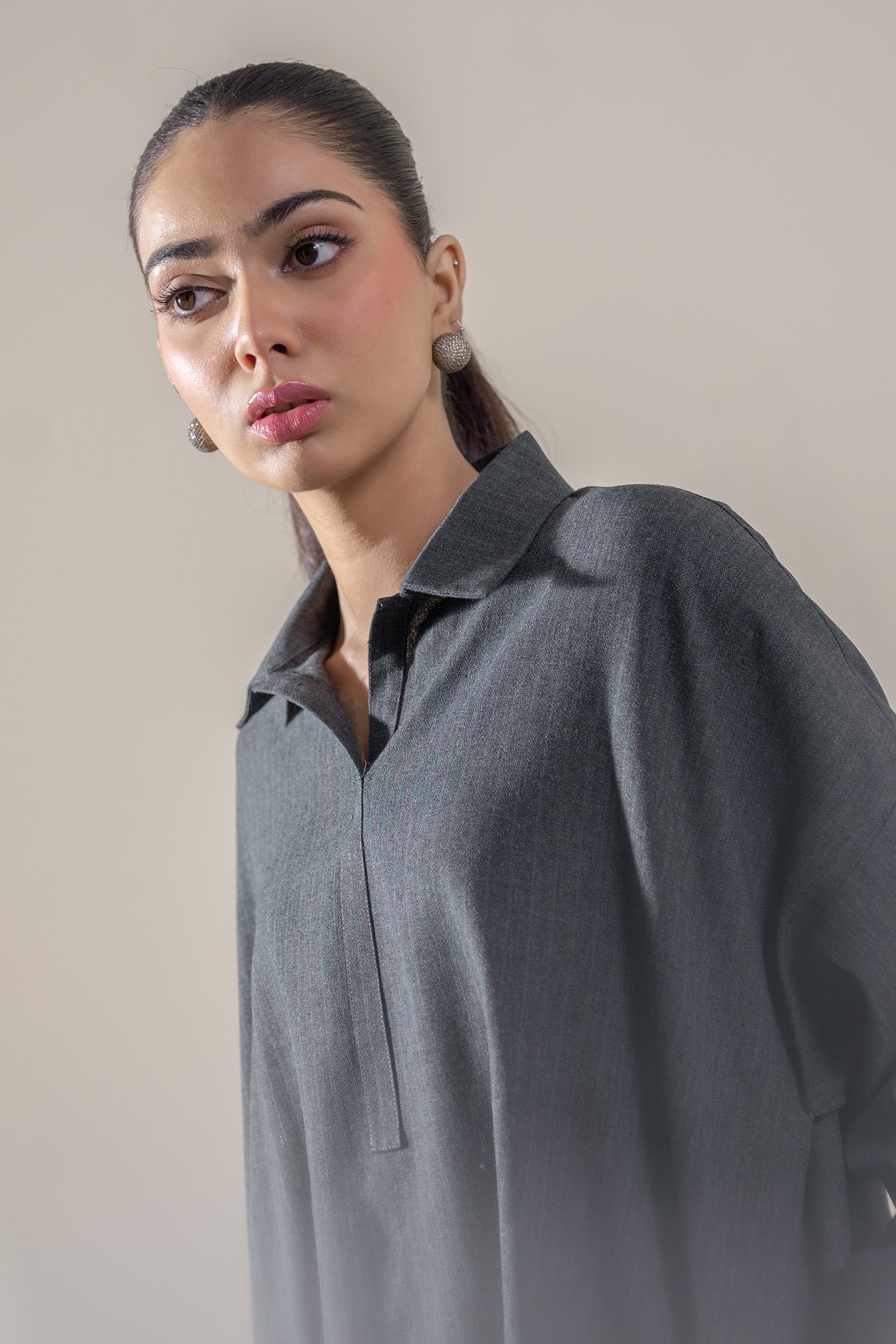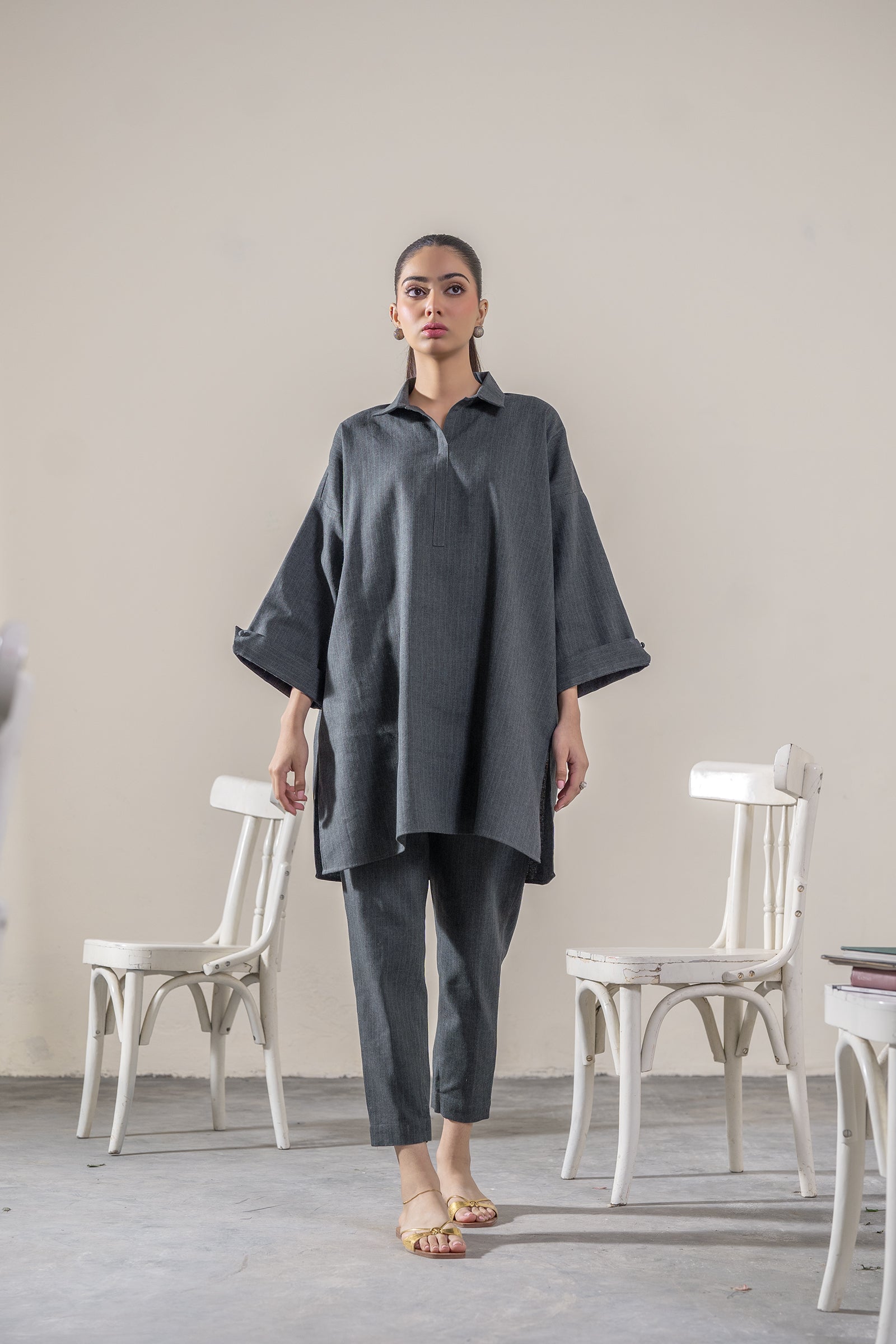 This modern minimalistic kurta with wide sleeves and a subtle collar detail paired with straight pants offers effortless elegance and all-day comfort—perfect for chic, contemporary everyday wear.