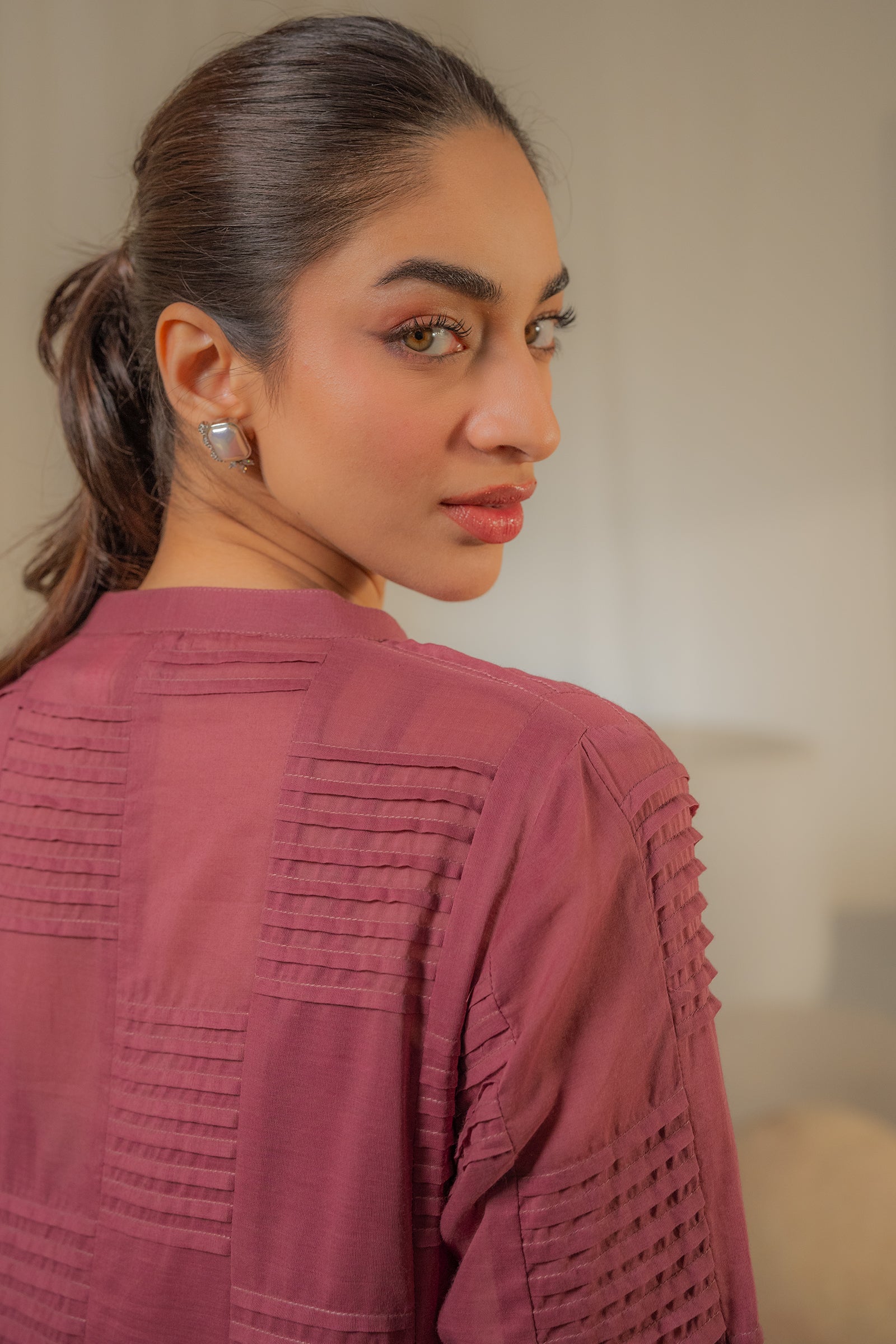 Designed with stitch action, this tea pink kurta showcases delicate surface detailing that adds depth and quiet elegance paired with straight pants. Perfect for an evening out