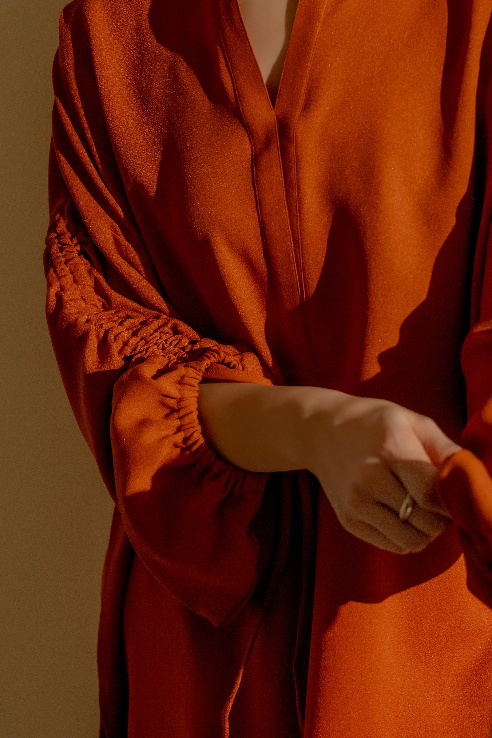 Fabric: CrepeColor: RustEmbellishment: SolidCut: Loose CutLength: 37 inches