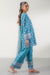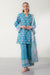 This season, add a touch of grace with this sky blue colored cambric three-piece with digital print.