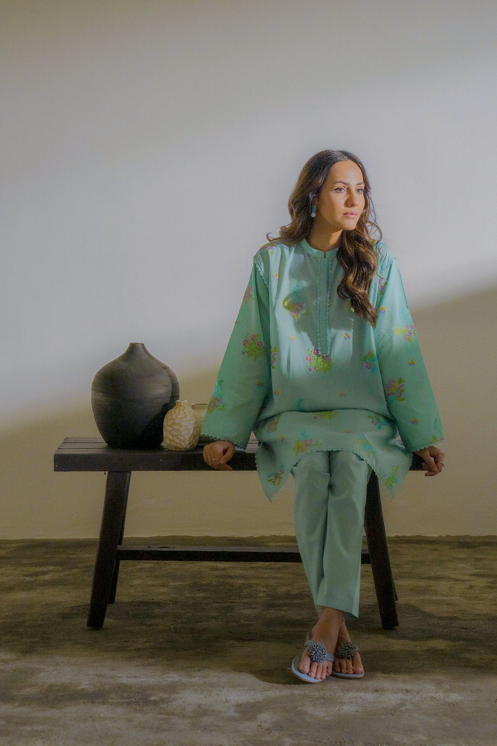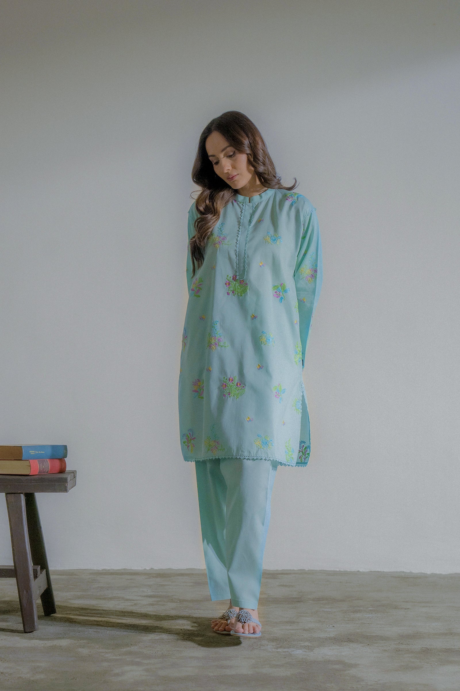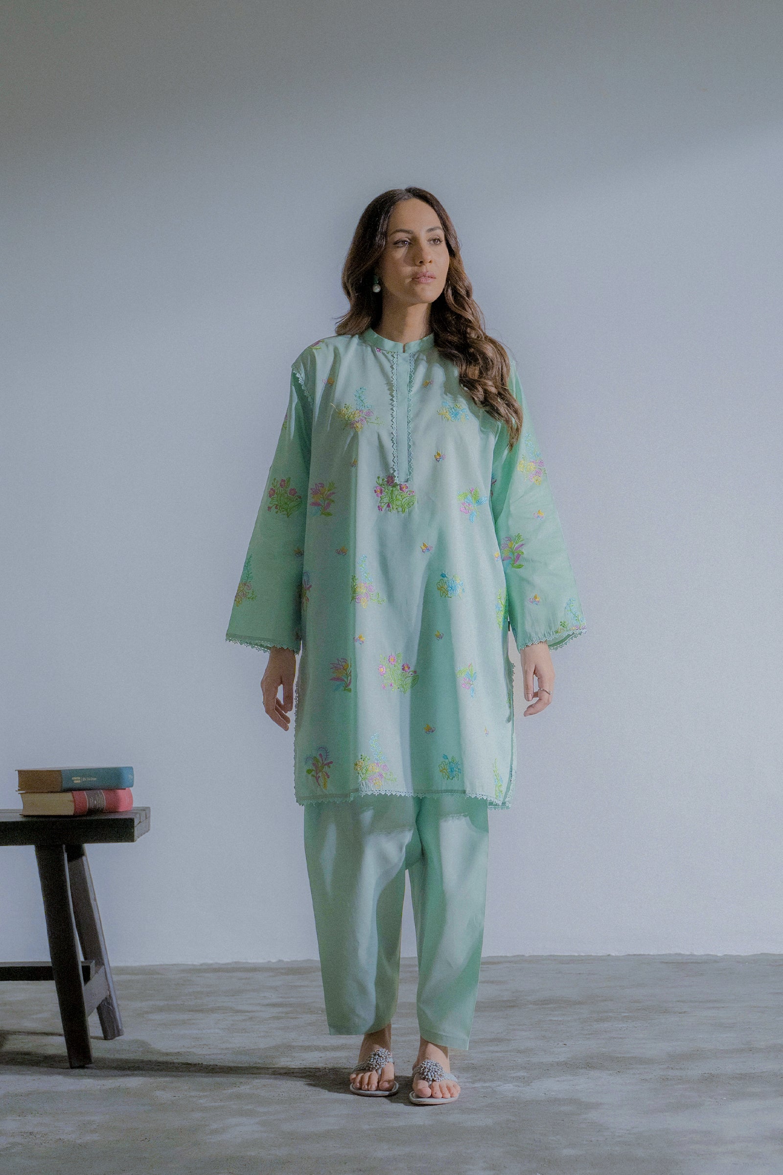 2 PIECE Print-Embroidery | Slub Cambric | Straight Cut