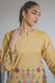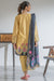 Brighten up your wardrobe with this mustard A-Line kurta, dupatta paired with pants, featuring intricate multicolor motifs and ethnic-inspired borders.