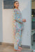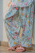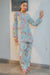 This straight-cut kurta with colorful botanical prints and delicate embroidery along the hem paired with matching shalwar, is perfect for a fresh summery look.