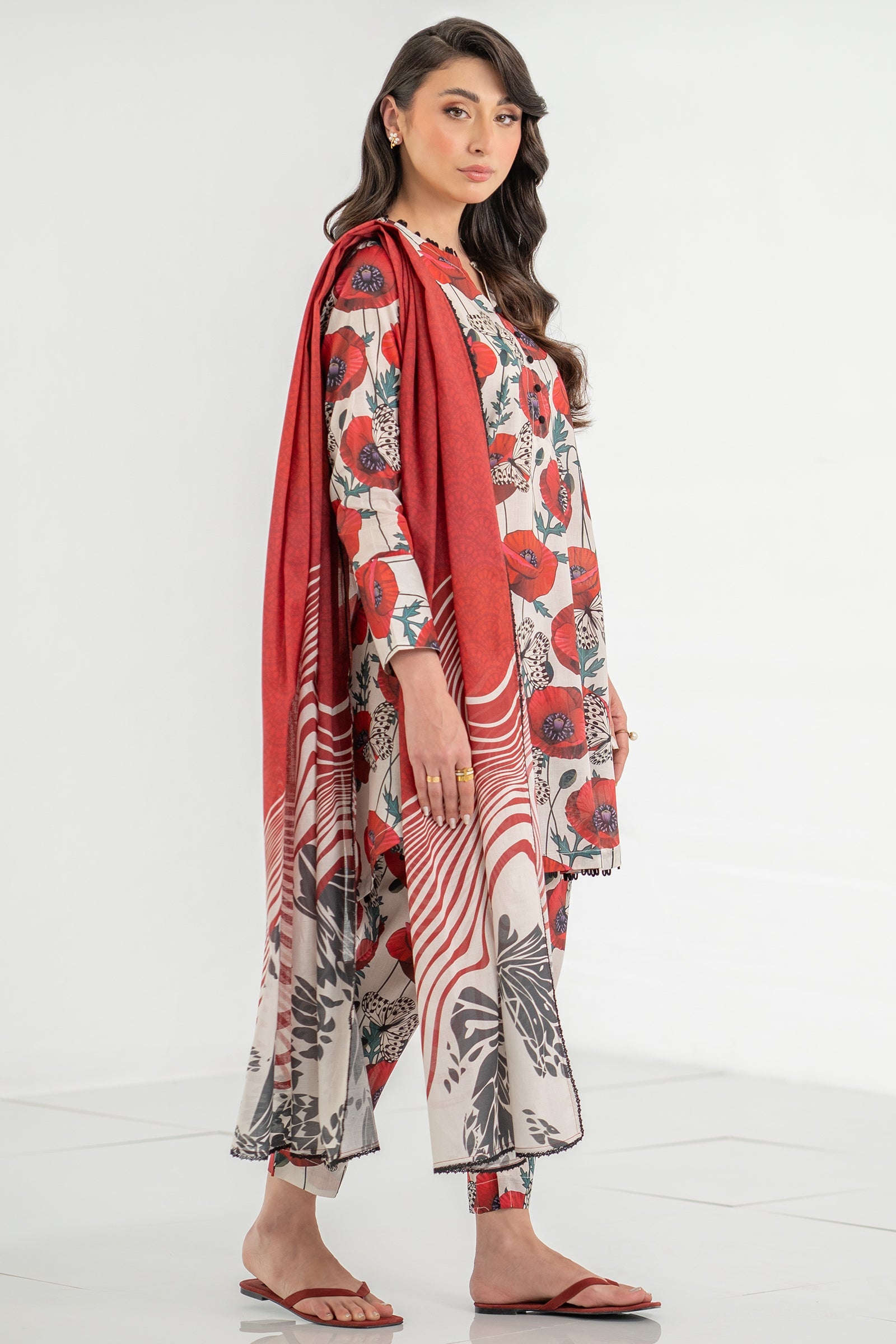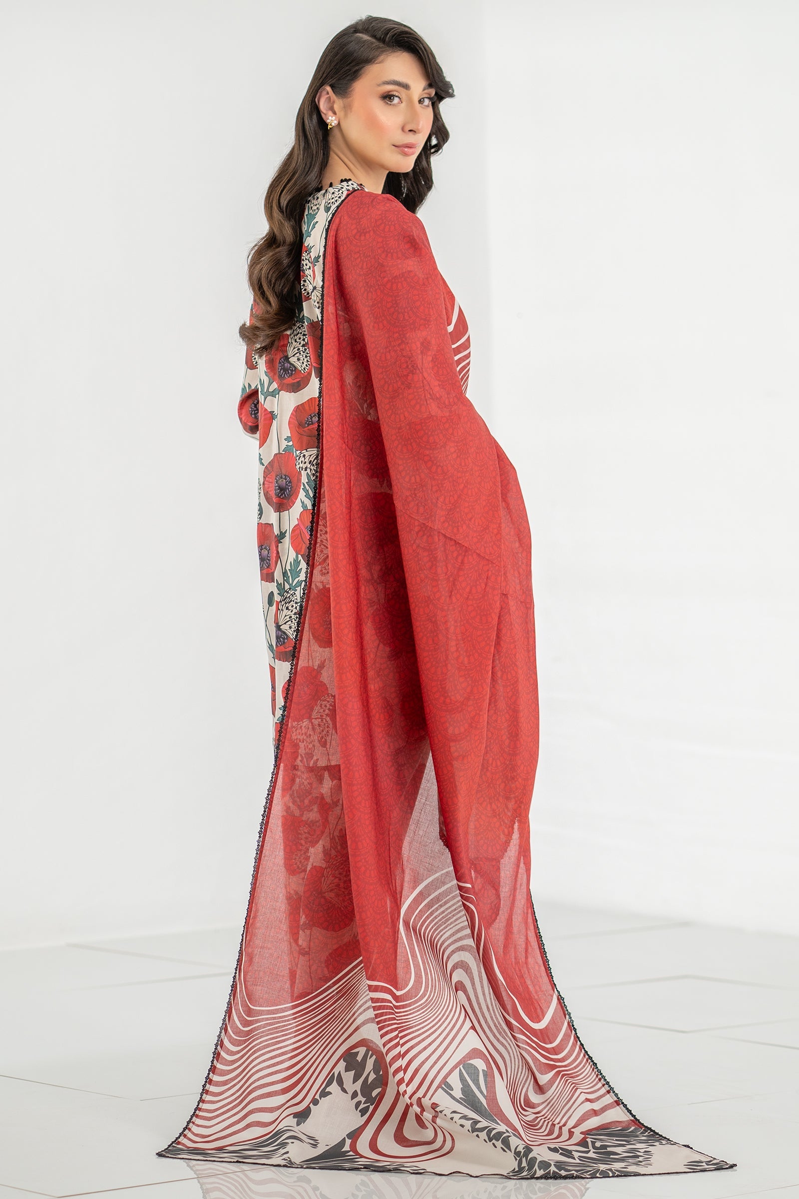 Elevate your style with this digital print three-piece unstitched this season Fabric : Lawn Color : Red Embellishment: Digital Print Lawn Shirt : 1.75 m | 60 inches wide Lawn Pants : 1.5m | 60 inches wide Lawn printed dupatta 2.5m