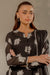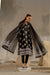 A striking black luxury ensemble adorned with puff print paired with a churidar and a richly print dupatta. Elegant, bold, and perfect for sophisticated evening wear.