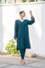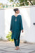 Stylish teal long, flowy kurta with a V-shaped back neckline and delicate embroidered detailing at the center back and sleeve edges paired with straight pants, this ensemble offers a graceful and modern look perfect for casual