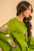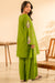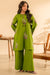 This green 2-piece set featuring a straight kurta with round neckline and tassel tie detail, intricate embroidery paired with palazzo with a perfect piece for day out