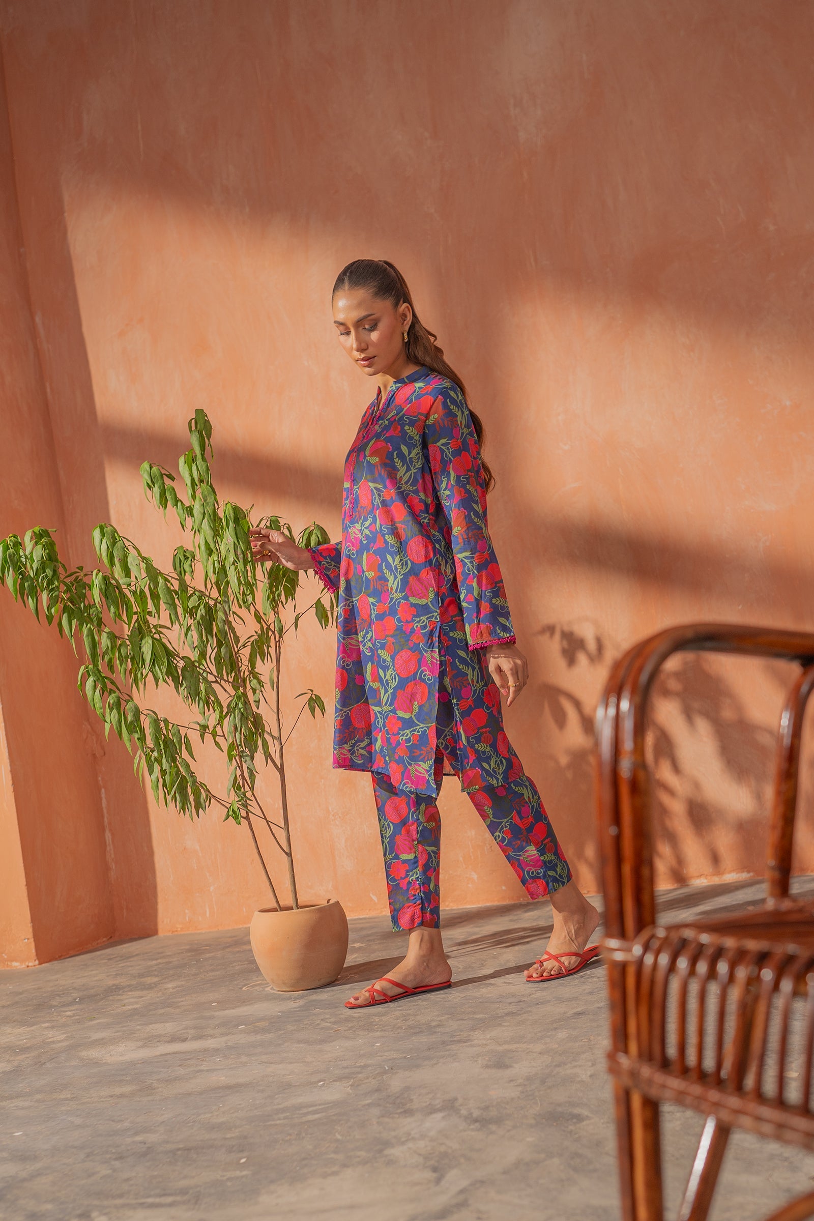 This fresh floral digital printed kurta with straight pants it’s perfect for effortless everyday elegance.