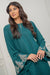 A classy teal green kurta with delicate embroidered sleeve borders paired with sleek shalwar perfect for an effortlessly refined and modern everyday look.