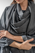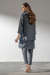 A chic charcoal self print kurta, straight trousers, and a soft, draped dupatta for an effortlessly modern, layered look.