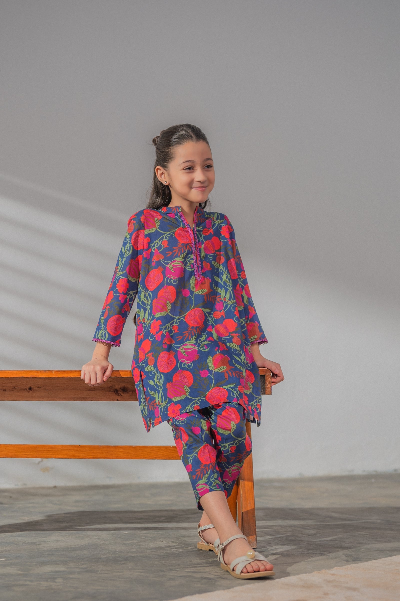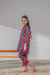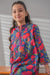 This blue colored breathable, lightweight set with vibrant floral prints for all-day wear