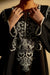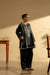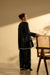 Black box cut kurta with white hand screen print on the front and borders, paired with farshi is all you need for an elegant look.