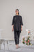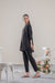 This black co-ord set featuring a relaxed, loose top with sleeve detailing and sleek shalwar is minimal, modern, and effortlessly chic